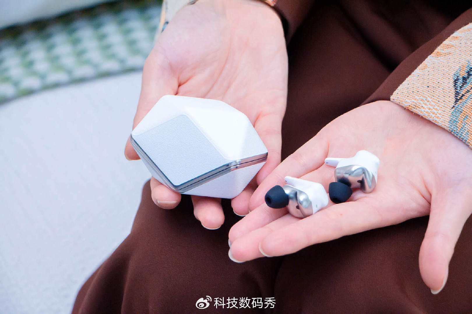 它的外观还是非常独特的,外壳陶瓷白的颜色,内侧则是非常好看的金属质感,而且造型颇有种人体工学的设计,佩戴起来也比较贴合耳道轮廓。