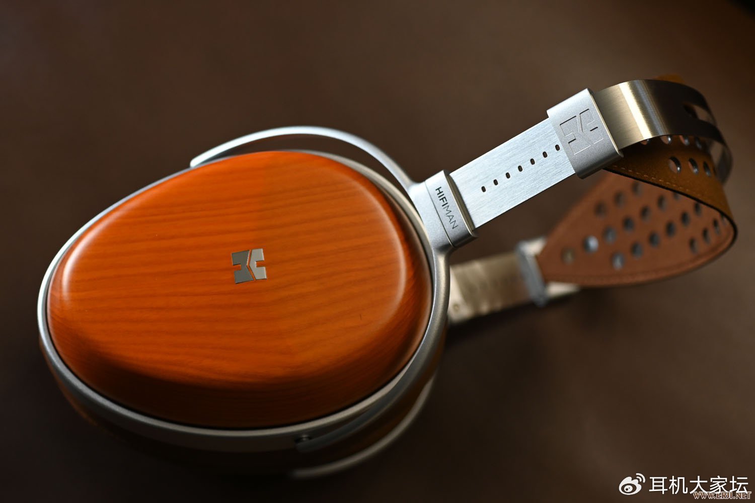 AUDIVINA的声场相当开阔,特别是平衡驱动方式,完全没有封闭式耳机常见声场狭窄、声音发闷混浊的问题。可以说AUDIVINA是目前封闭式耳机里声场做得最好的,已经达到一些动圈开放式耳机的水平。HIFIMAN在AUDIVINA的外壳构造、内部吸音处理等做了很多独创性设计。木质外壳可以看到明显的V型折线,整体厚度不算夸张,重量470g,佩戴也比较舒适。