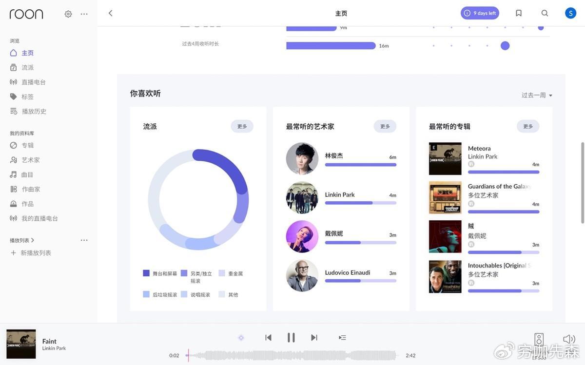 更何况Roon用来管理音频文件,不管是分类、收藏、加喜好,它都能对音频资源进行整理,而且还能匹配专辑封面等信息,体验还是非常不错的,省去了自己维护音频资源的时间和精力。