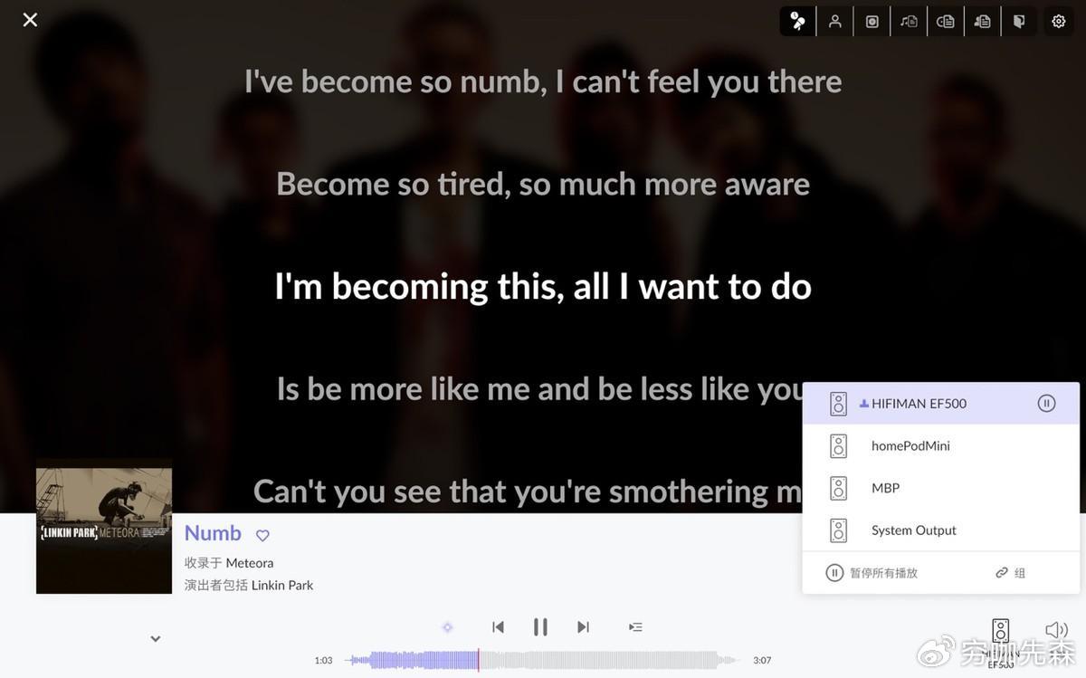 所以整体来看,使用传统数据线模式播放无损音乐和使用EF500搭配Roon进行网络播放无损音乐,就音质而言基本没有区别,但是网络播放可以轻松实现多端控制,而且解除了播放设备(手机、iPad、电脑)和音源的强关联关系,使用起来更方便,也是我最推荐的使用方式。