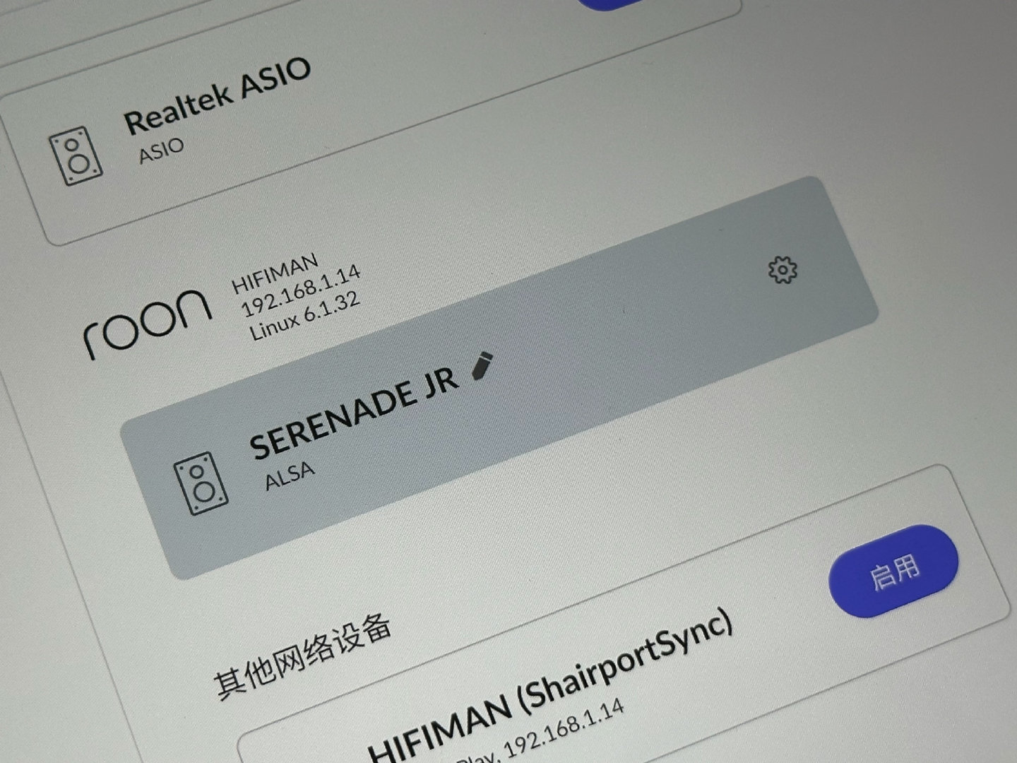 除此之外,小夜曲JR还是非常出色的Roon输出端。Roon是一款专业的音频播放软件,配合小夜曲JR使用后,能够进一步发挥网络播放的便利性。用户无需连接前端设备,即可直接播放PC、MAC或者NAS里的无损音乐,实现了音乐播放的零距离,极大地简化了用户的操作流程。