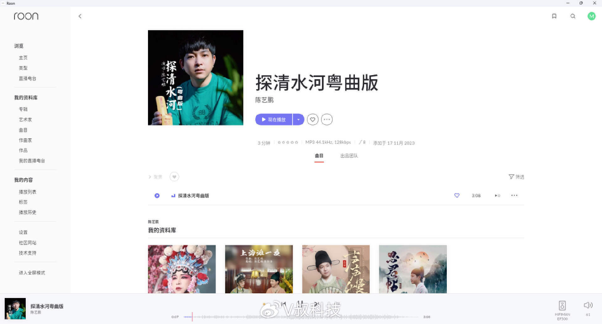 另外,在手机端,我们也可以安装Roon来体验HIFIMAN EF500的强大能力!用ios系统为例,安装的是Roon 1.8的版本,通过在PC端开启Roon Server服务后,可以直接搜索到HIFIMAN EF500,然后连接设置就可以直接使用了。这里使用的是PC上的音乐库,不需要额外再做任何调整,只需要把存音乐的文件夹添加上就可以了。当然我们也可以把Roon直接安装在NAS上,这样不使用电脑也可以听音乐,真正做到全平台播放!