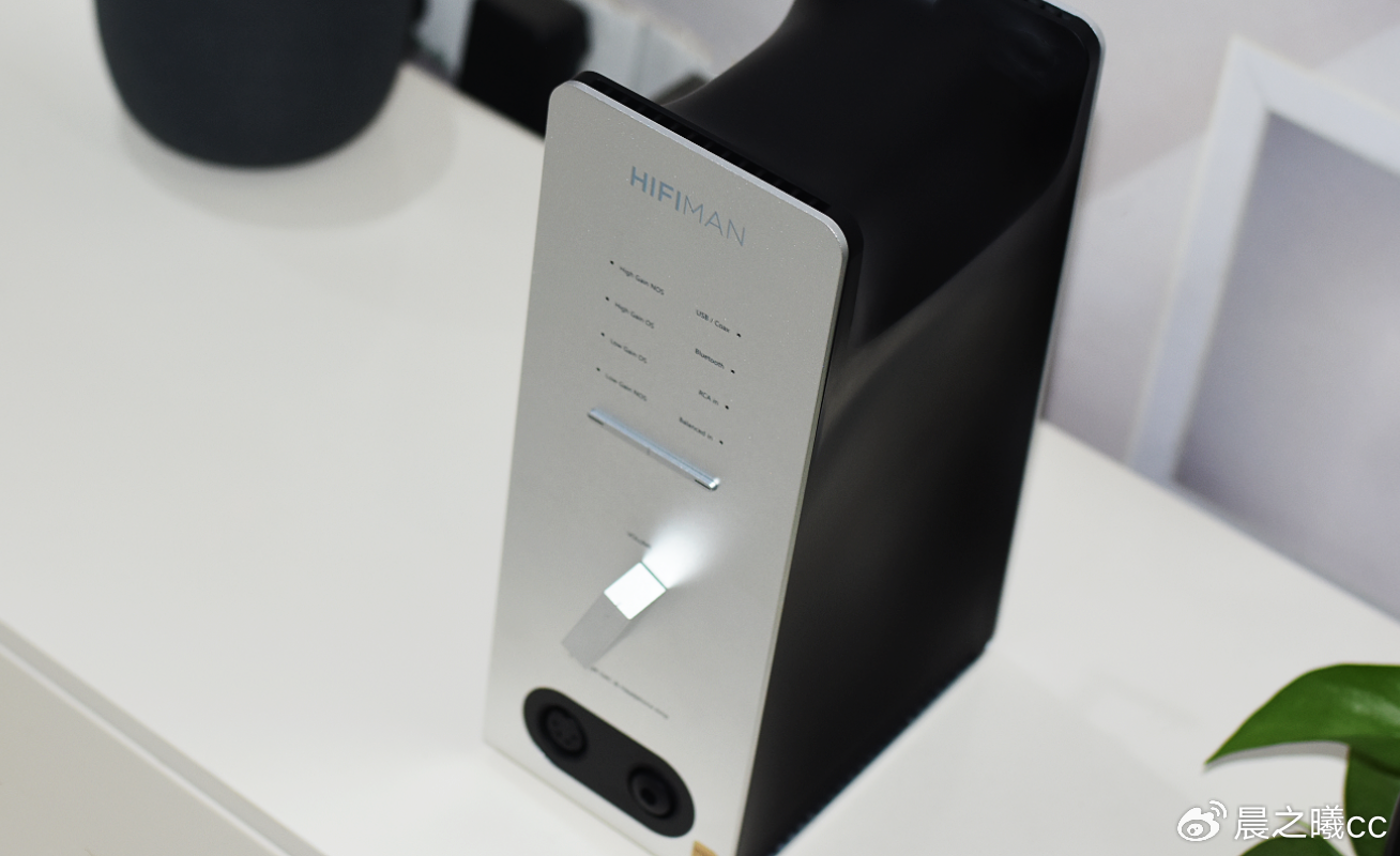 当然,立式的造型除了给产品带来了造型的改变外,也是大幅度的提升了我们的使用体验。首先是,桌面占用面积,这里我也是略微比较了一下,HIFIMAN EF600相对于EF400来说,可以减少约一半的桌面面积占用。同时在拉高产品身高的时间,厂商也是在顶部设计了一个凹槽,正好可以作为我们大耳的支架来用,只能说,厂商在设计产品时,工程师在有限的体积内,实现了功能和收纳双重功能,这点我必须要给HIFIMAN点个赞。