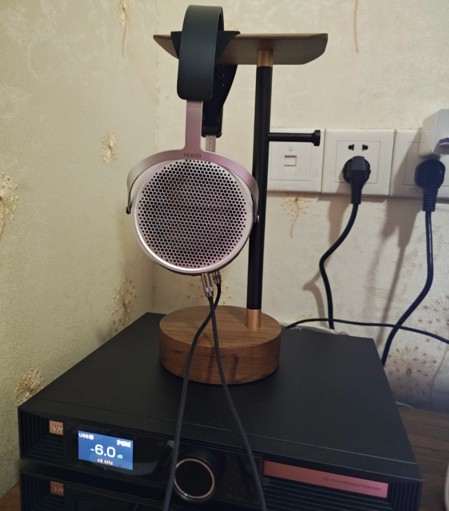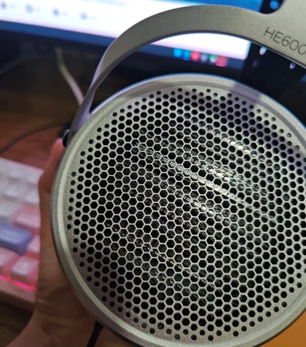 一直以来久仰HE6和HE6se的大名,但由于极高的驱动难度,也一直让我望而却步。前不久看到这两款传奇耳机的继任者HE600发布,第一时间也是预定了。参数上28欧、94db/mv,看参数灵敏度的提升非常大,终于是不需要功放来驱动了一些前端没那么好的烧友们也是可以尝试了,实事也确实如此,在我的vmv套的搭配下声场低频已经能够很好的被推出来。 佩戴上,虽然新款的头梁更加的轻便了,耳罩大小深浅适中。难能可贵的是这次耳机的重量做到了389g在平板耳机里算得上非常轻,久戴不累.