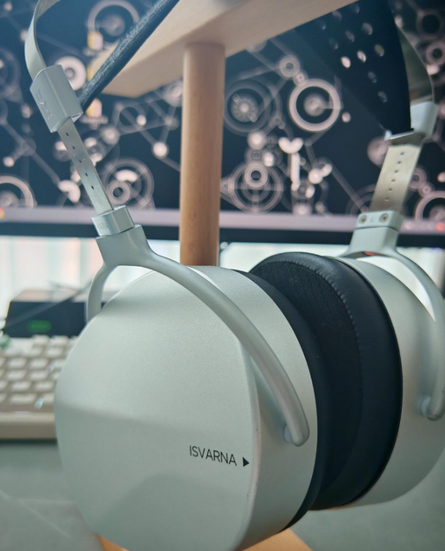 ISVARNA的净重462g,但触感细腻的耳罩和头带,能够360度旋转的转轴使得压力分配均匀,体感负担小,同时较大的耳罩能完全包覆耳朵,以笔者自身来讲,连续佩戴三四小时仍无压耳感与夹头压头感,对眼镜党也较为友好。