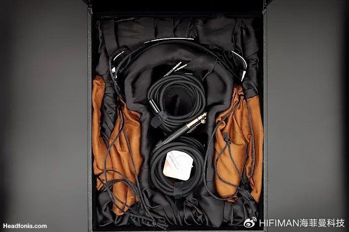 HE1000 Unveiled沿用HIFIMAN标志性仿皮礼盒包装,此次采用黑色版本。内部新增磁吸护罩收纳袋(如图示),为单元提供了周全的保护。
