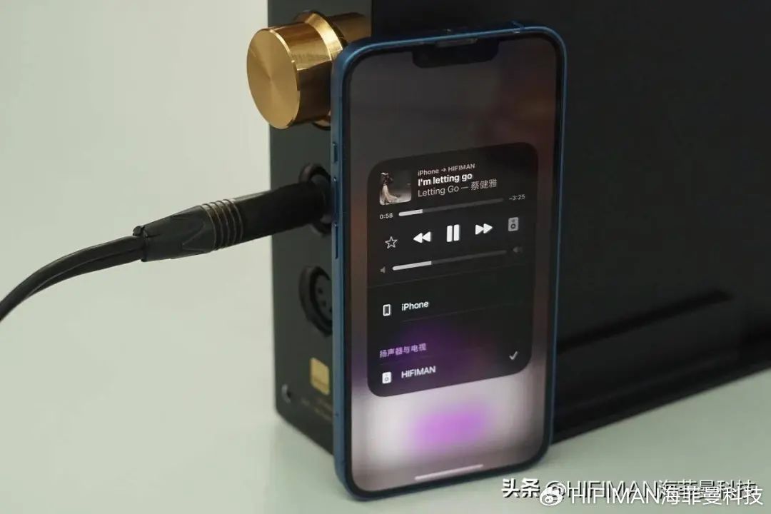 而播放流媒体音乐时,HIFIMAN EF499可以实现的玩法就更多了。在手机等信号源和HIFIMAN EF499都连接到同一个路由器时,iOS用户可以直接使用系统的AirPlay功能,直接将正在播放的流媒体音乐推送到HIFIMAN EF499上。