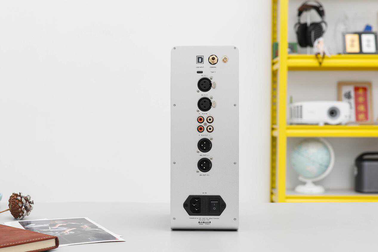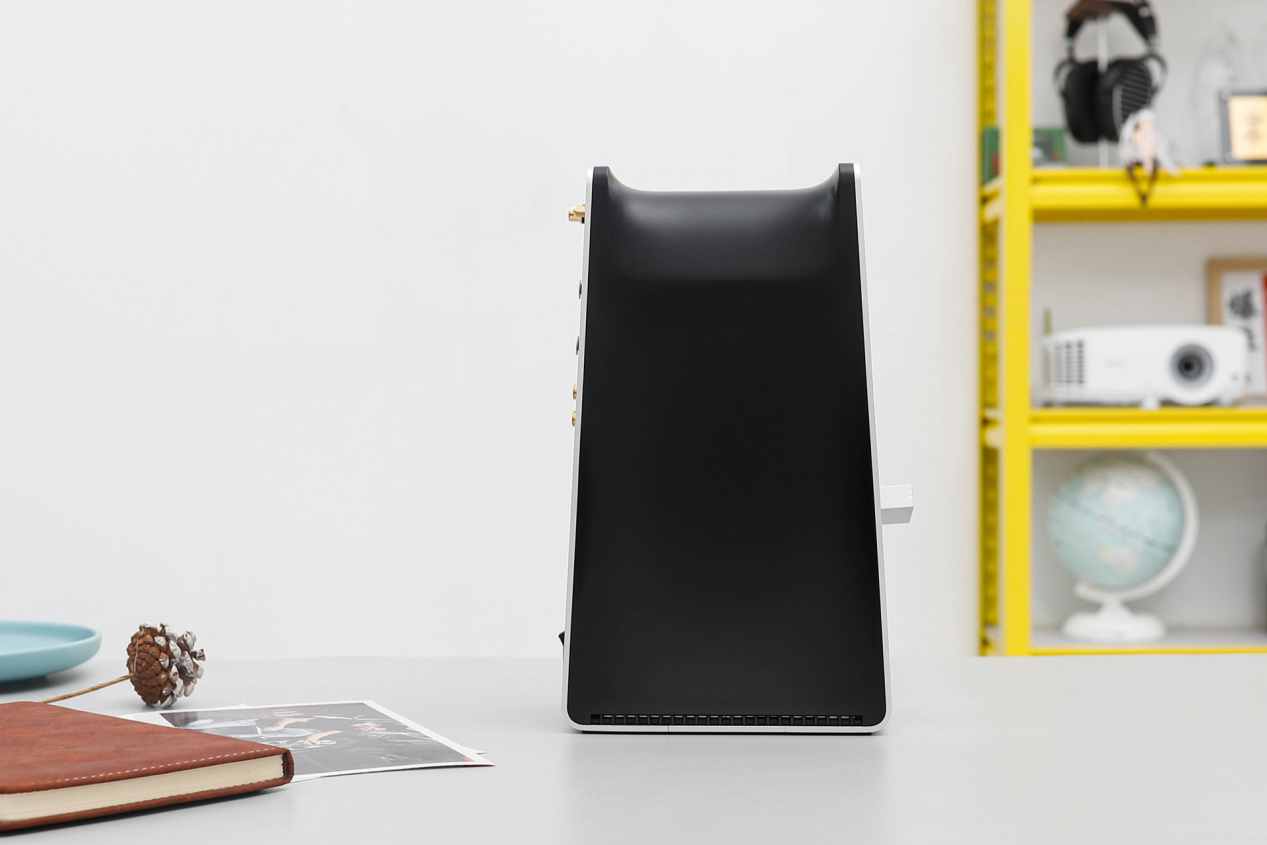 融合古典主义与现代主义元素设计风格,源于20世纪初德国包豪斯学派,不仅拥有独特的魅力,HIFIMAN还将EF600打造成艺术派,不用时,就算你将它静静丢到了桌面,也可以是一件艺术品,外观体积比想象中还要小巧一些,具体尺寸为165mm*104mm,不会占用桌面太多空间。