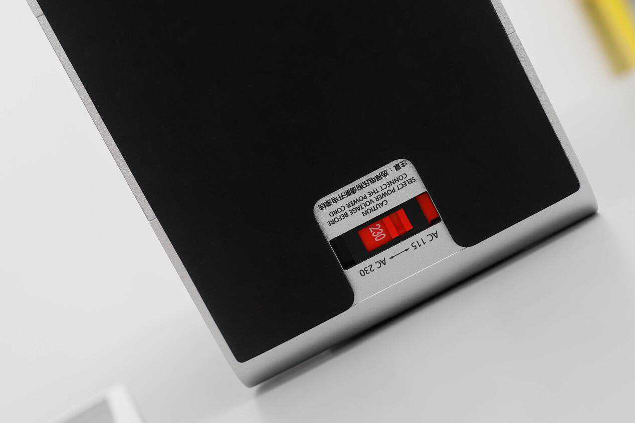 HIFIMAN EF600还继承了家族另外一个特色,底部依旧保留了一枚单独的I/O开关,可在AC 115和AC 230之间进行切换,国内国外均可使用,这是一枚电压转换开关。