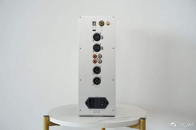 前面板的布局非常的直观,从上往下分别对应的是高低增益下OS或NOS输出及各种输入模式的指示灯,功能选择按键、音量选择旋钮及一个卡侬耳机接口、一个6.35mm耳机接口。