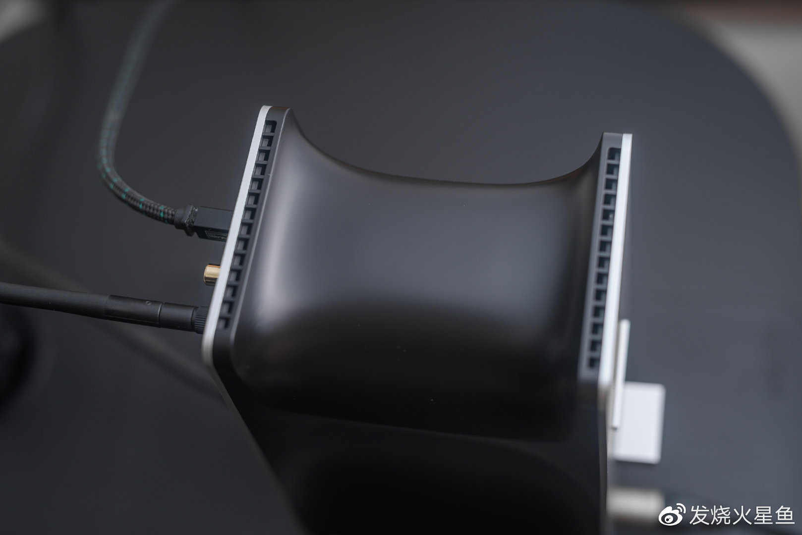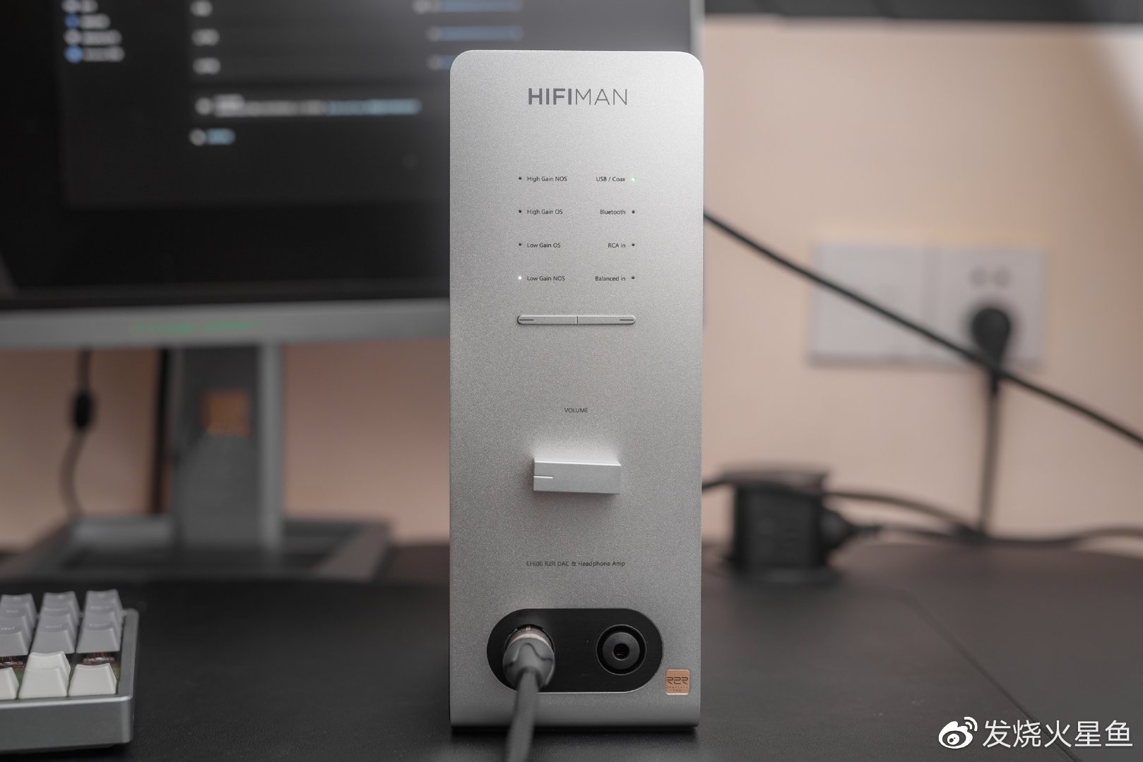 上面纯属题外话。回归产品本身,EF600除了立式“包豪斯”的设计特点外,不少地方也是花了心思的。市面上,除了EF600外,乾隆盛、旷世等厂家也推出过类似的立式产品,但这些产品通过另外购买支架强行将设备立起来,作为“耳机架”而言贴合度干不过专门工学设计过的EF600的。此外,HIFIMAN设计时将重量最大的变压器放在EF600底部,重心跟倾于下方,上方摆放相对较轻的解码和耳放电路,底部和顶部留有散热孔,从物理学角度摆放会更稳定,热量自下而上效率也更高一些。EF600,功能也一目了然。