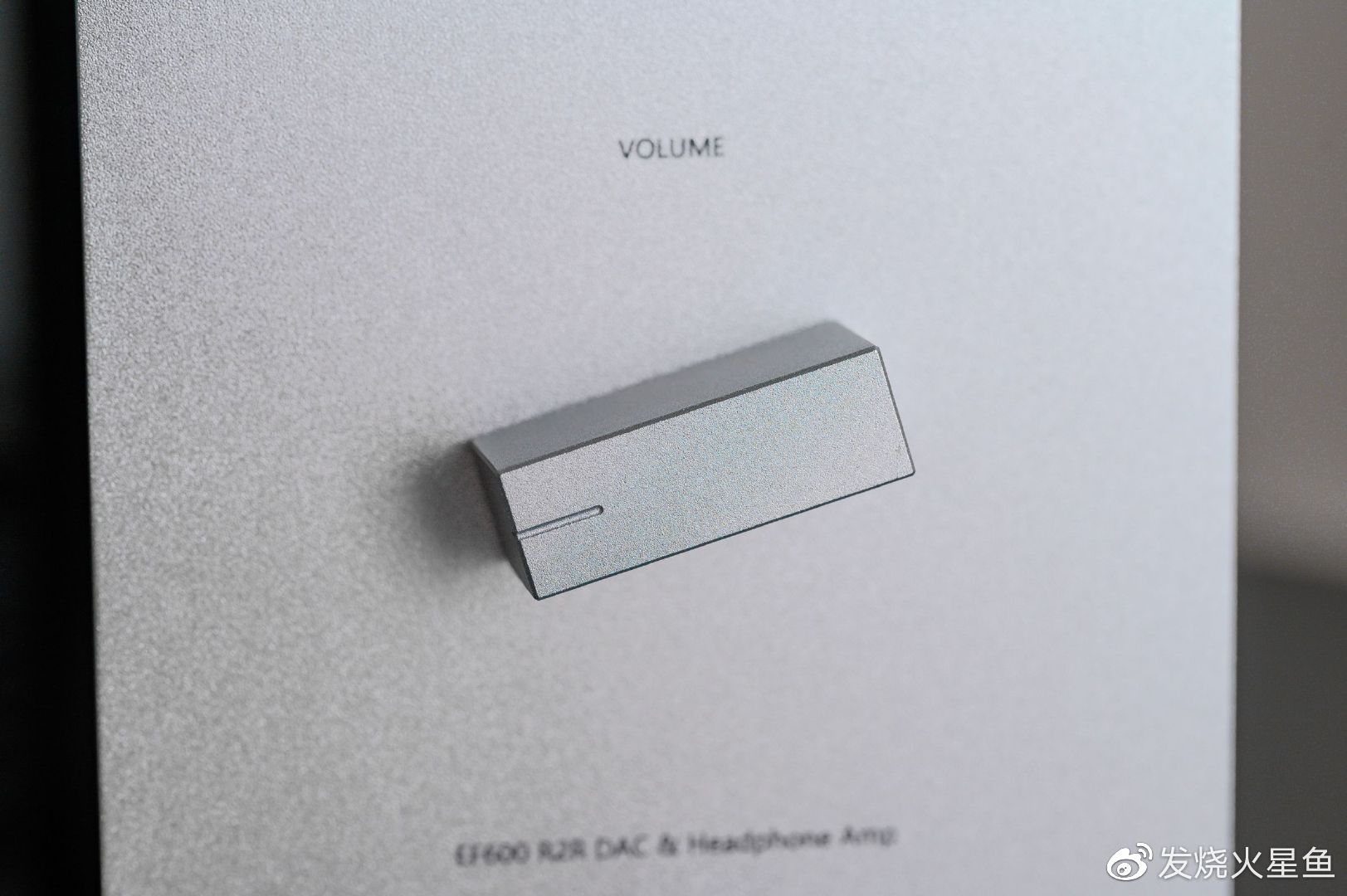如今发烧器材的主流设计风格还是“卧式”,“卧式”的好处是内部设计时元器件摆放更整齐和容易,成品也容易在设置机架或桌面上。EF600则使用立式形态的“包豪斯”风格,设计之初就为了一体机和更少占地空间而存在,不能玩“叠叠乐”,银色面板和“R2R”金色LOGO带来了不错的格调。考虑到耳机总需要一个耳机架,EF600侧面和顶部以一种颇为工学的“类耳机架”方式而设计,Arya隐磁版这种腔体颇大的耳机也能轻松挂在其中,实现简洁、美观、大方的放置。